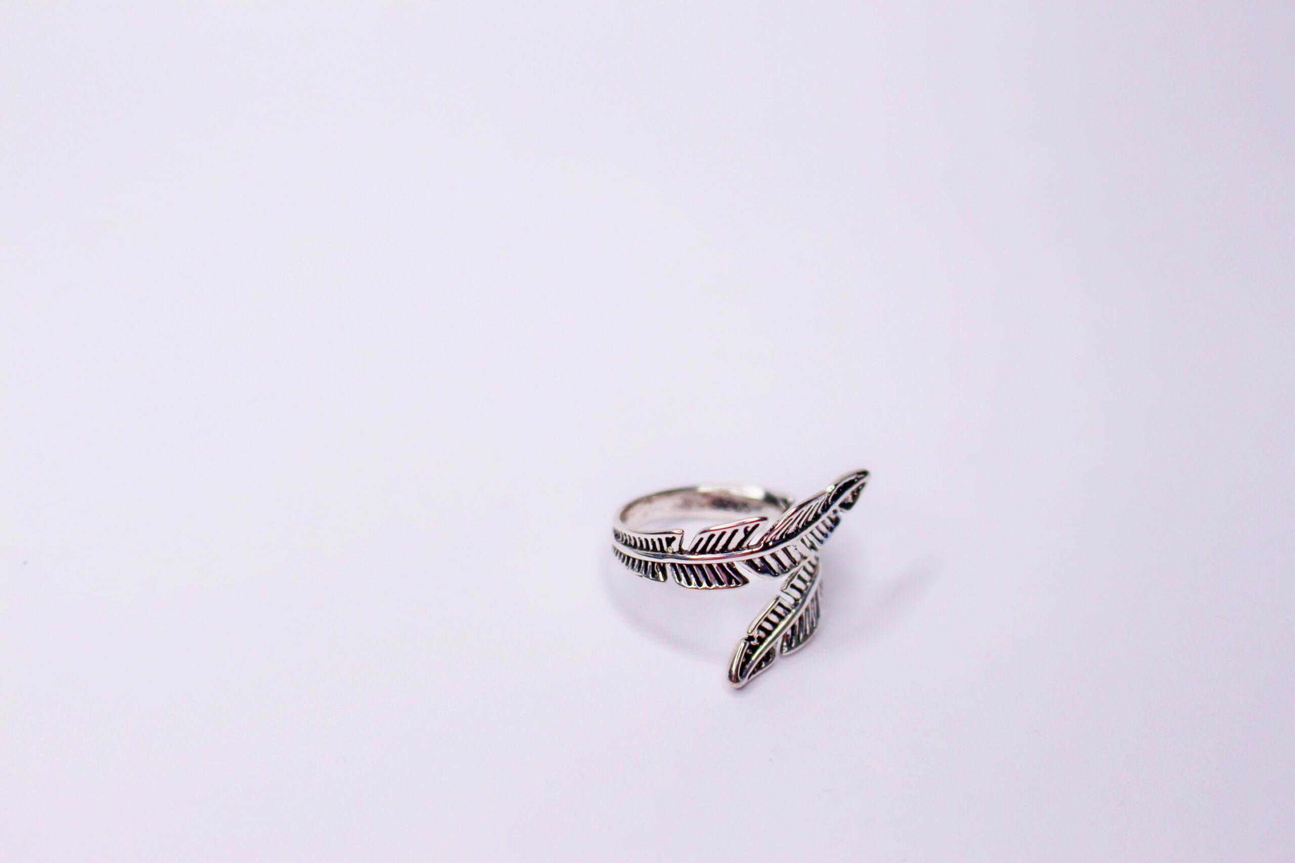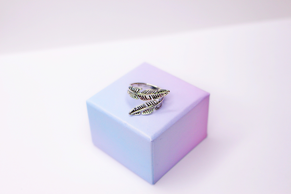 Anillo ancho pluma de plata envejecida