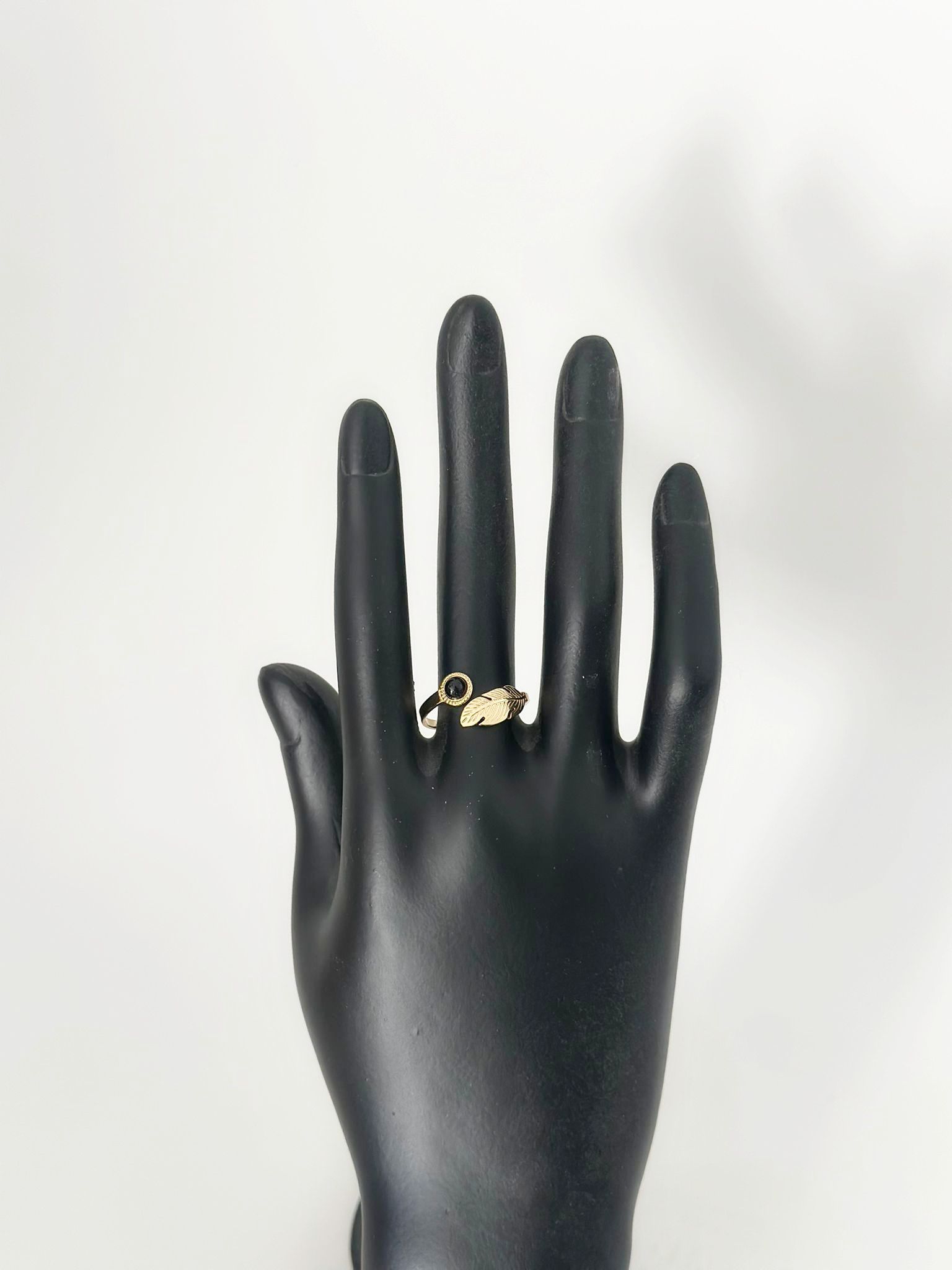 Anillo con piedra de obsidiana negra y pluma
