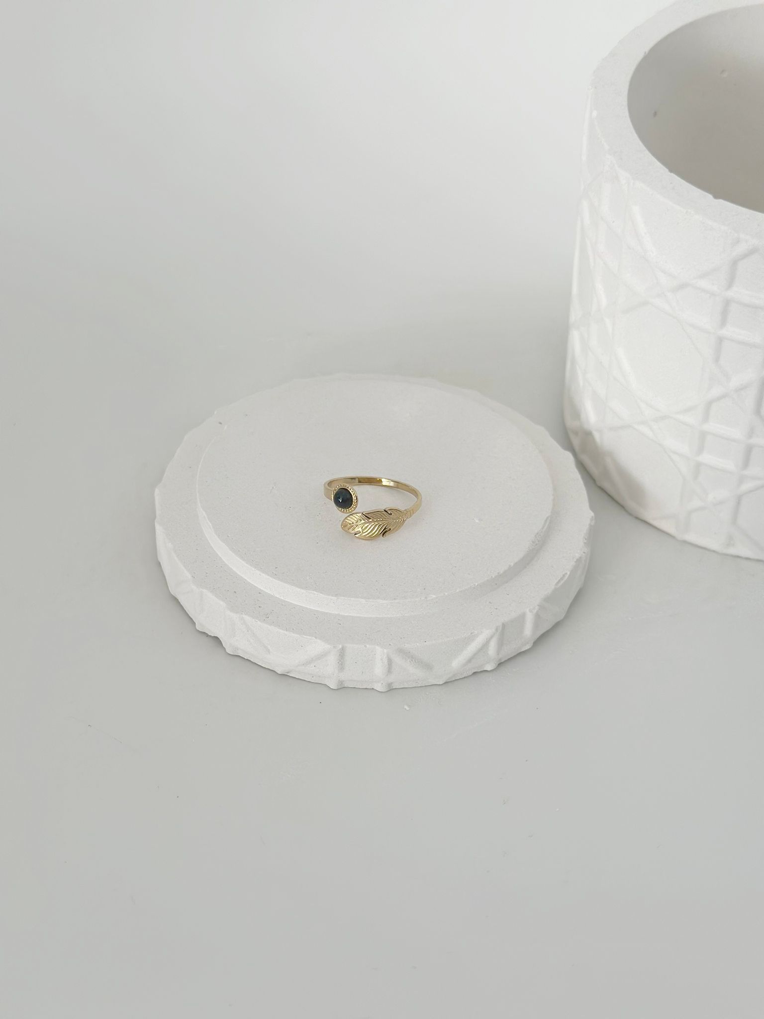 Este anillo es una pieza elegante y única que combina la belleza de la piedra de obsidiana negra con la delicadeza de la pluma. La obsidiana negra es una piedra preciosa con propiedades protectoras y curativas. La pluma, por su parte, representa la libertad y la espiritualidad.