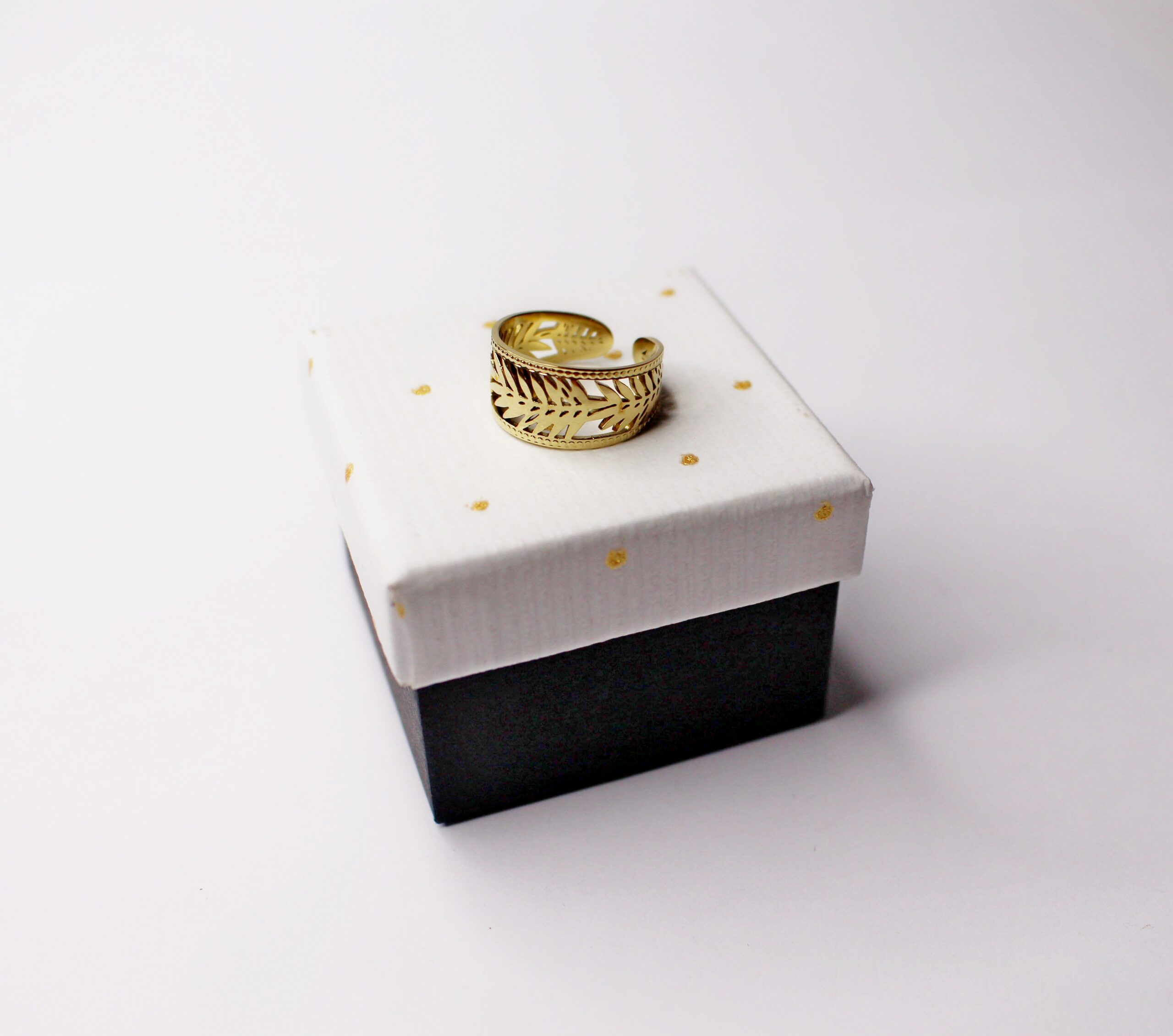 Anillo dorado hojas