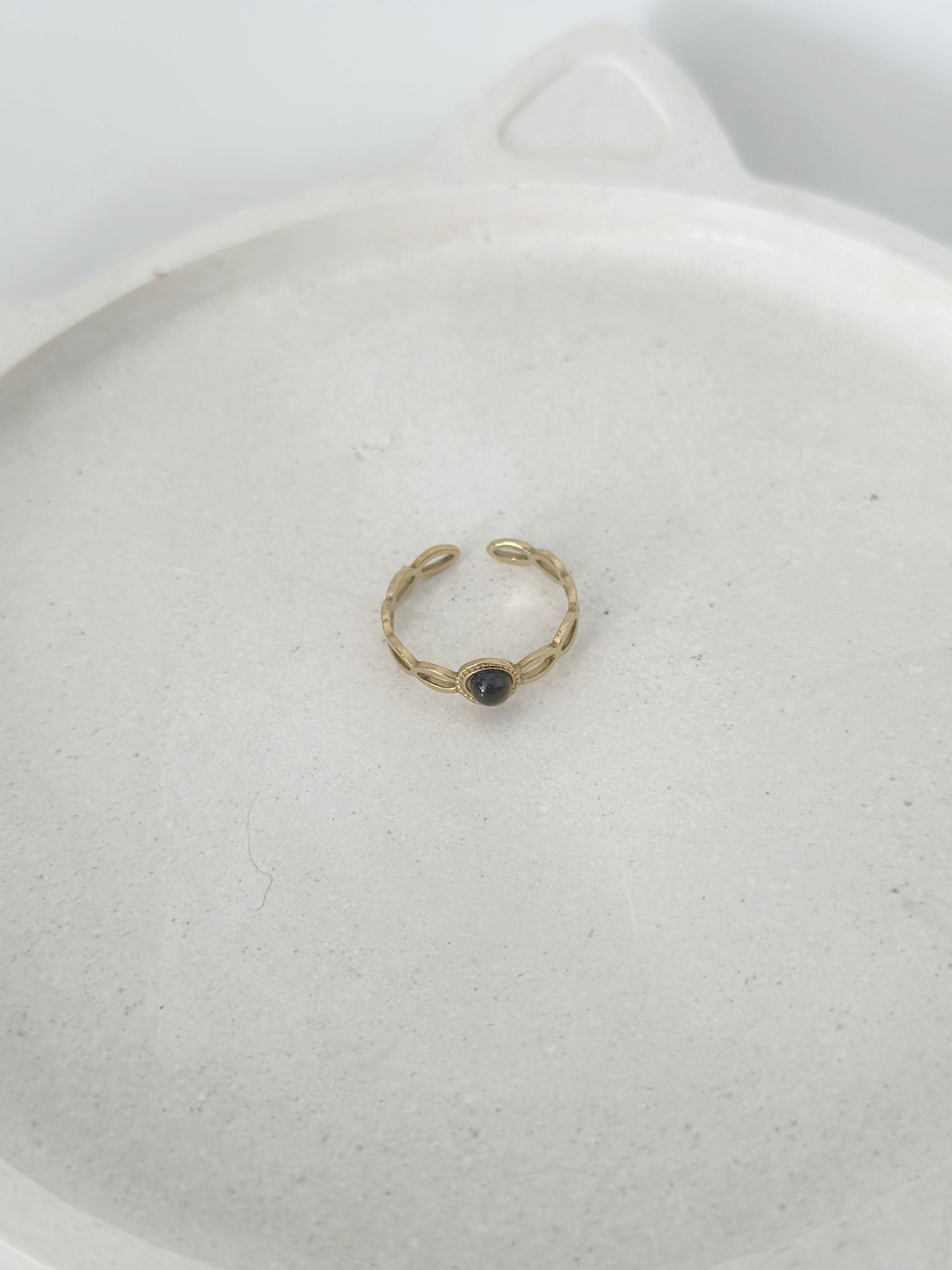 Una pieza elegante y única con una piedra preciosa protectora y curativa. Disponible en dos colores y talla ajustable.