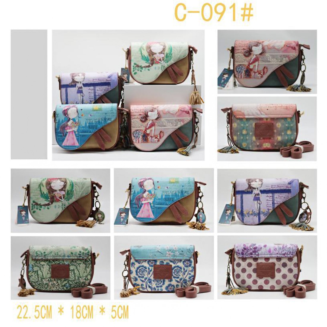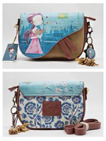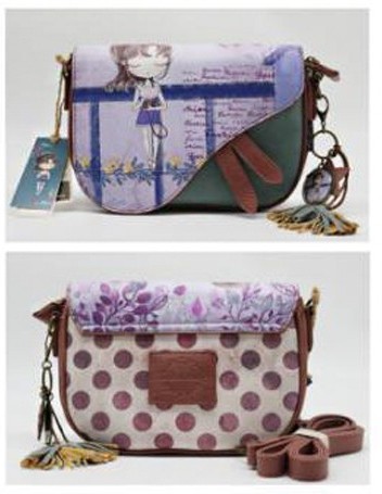 - Bandolera estampado diseño muñeca y cierre por cremallera.