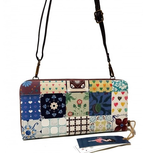 - Monedero billetero largo estampado con cierre de cremallera , en el interior tiene varios compartimentos.