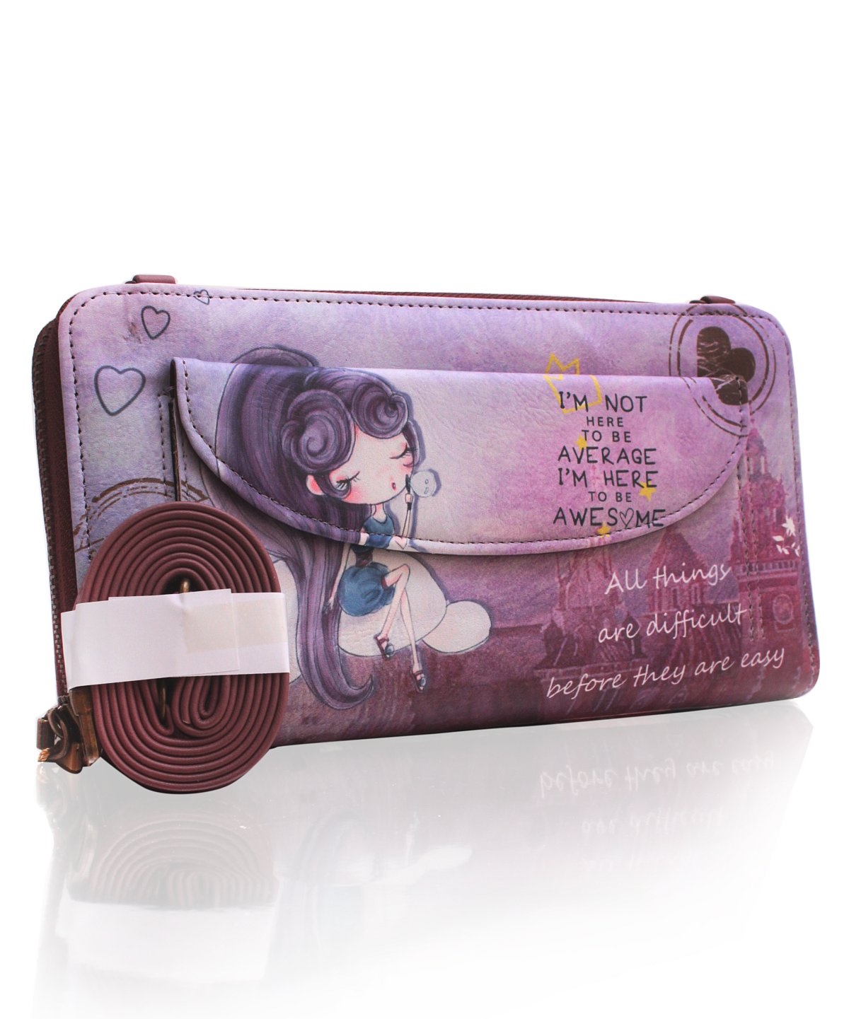 - Monedero billetero largo con cierre de cremallera estampado personaje corazones, en el interior tiene varios compartimentos.