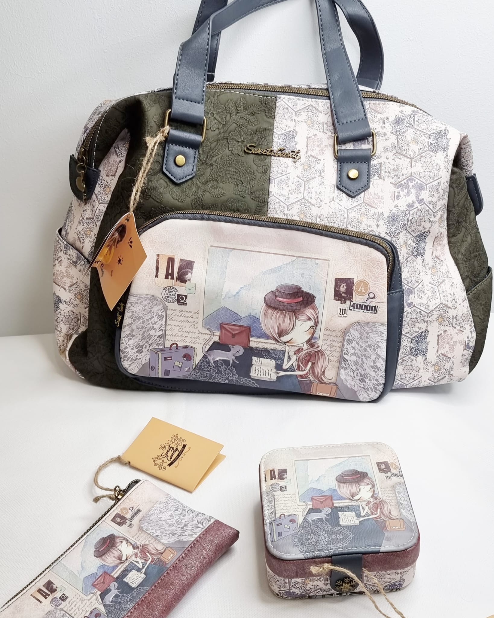 - Bolso de mano con estampado floral. Con cierre por cremallera..