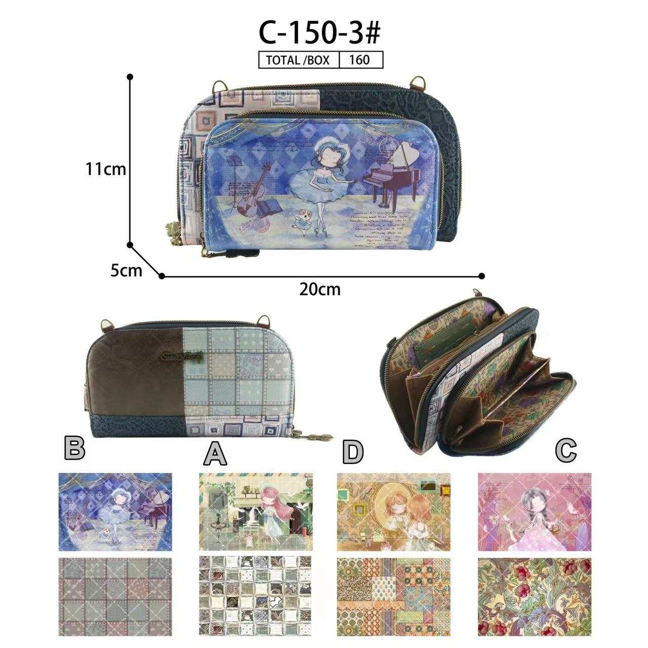 - Cartera con estampado diseño muñecas con solapa. Tiene varios compartimentos para tarjetas y espacio para foto.