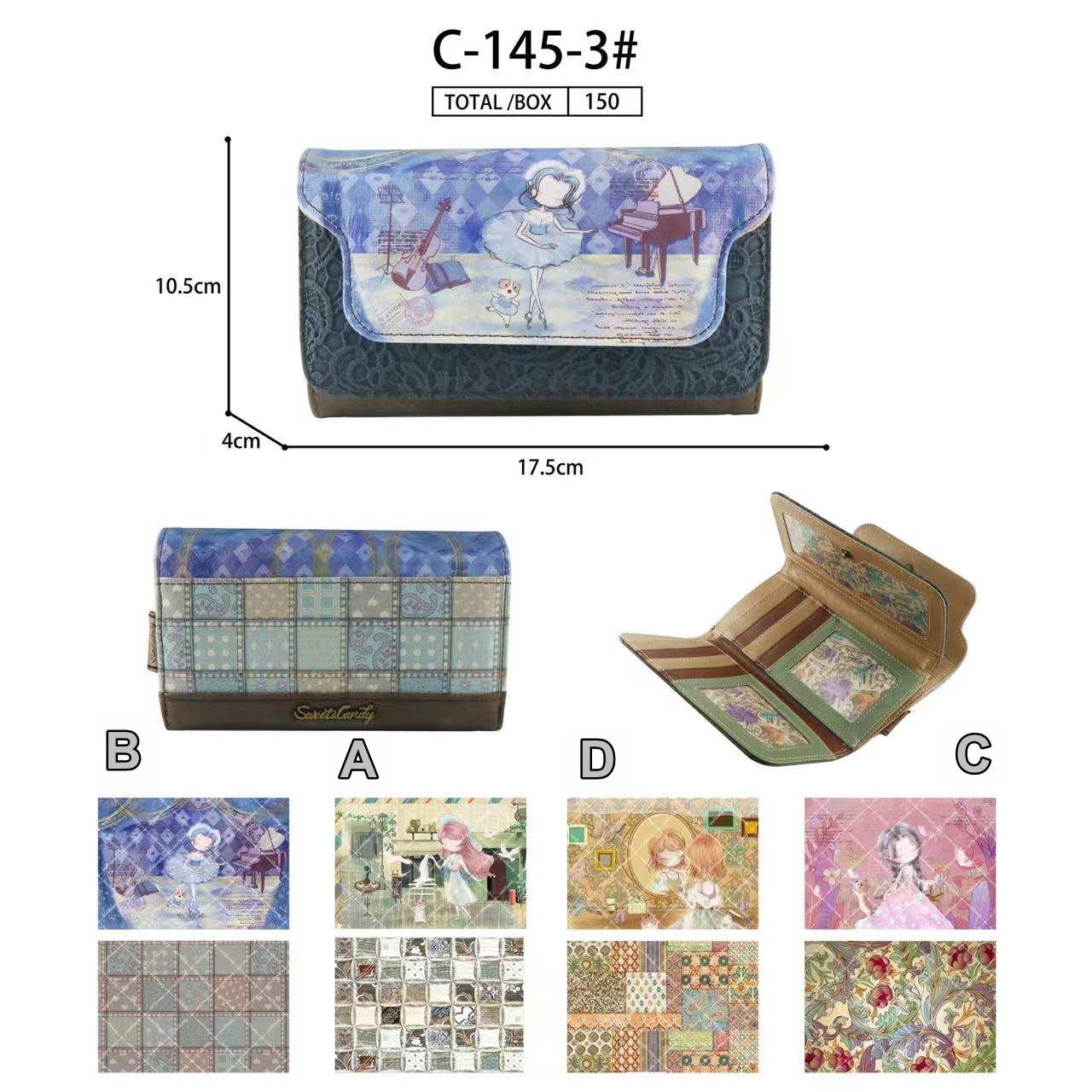 - Cartera rectangular con estampado diseño variados. Con monedero y pequeña solapa de cierre.