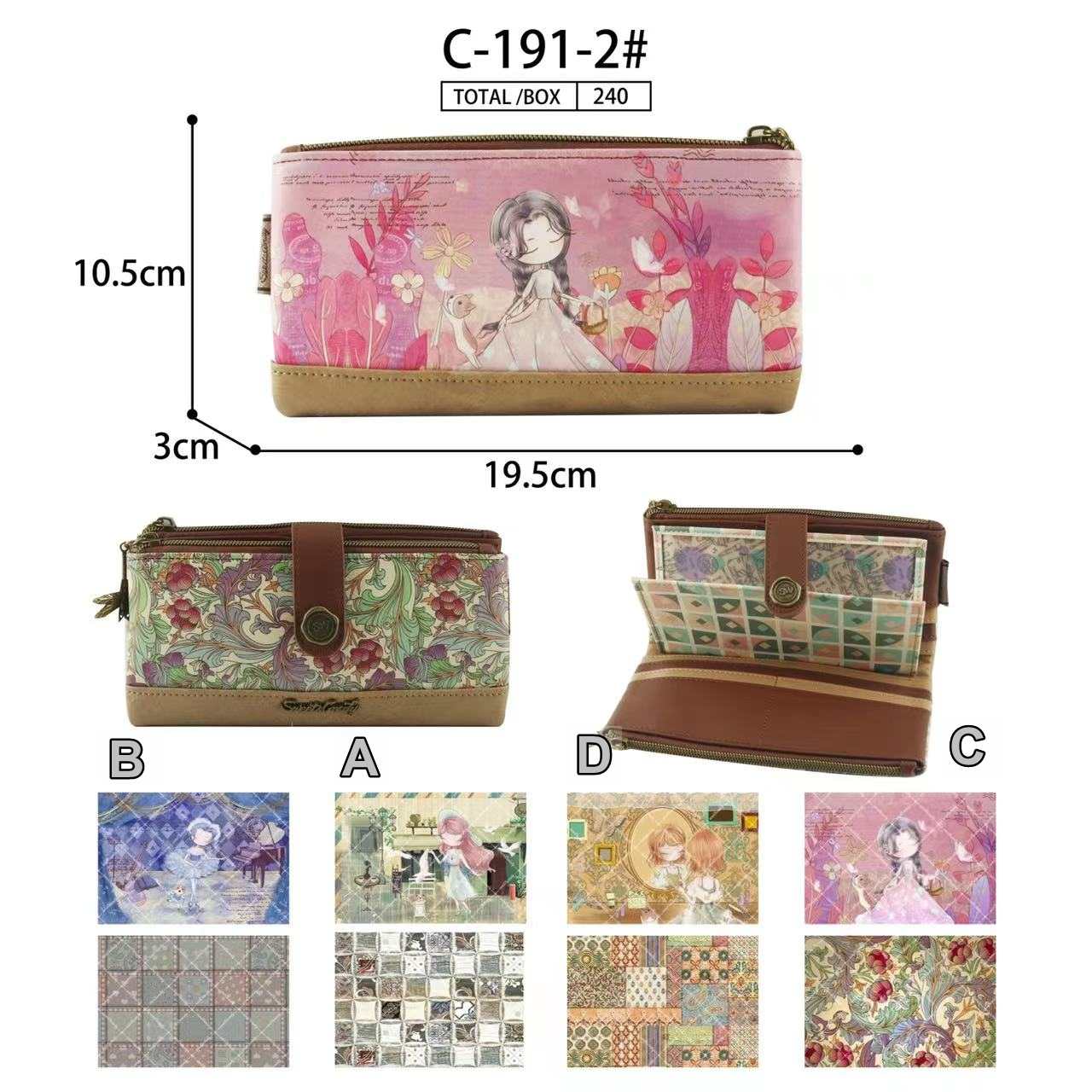 - Cartera rectangular con estampado diseño variados. Con tarjetero extraíble y pequeña solapa de cierre.