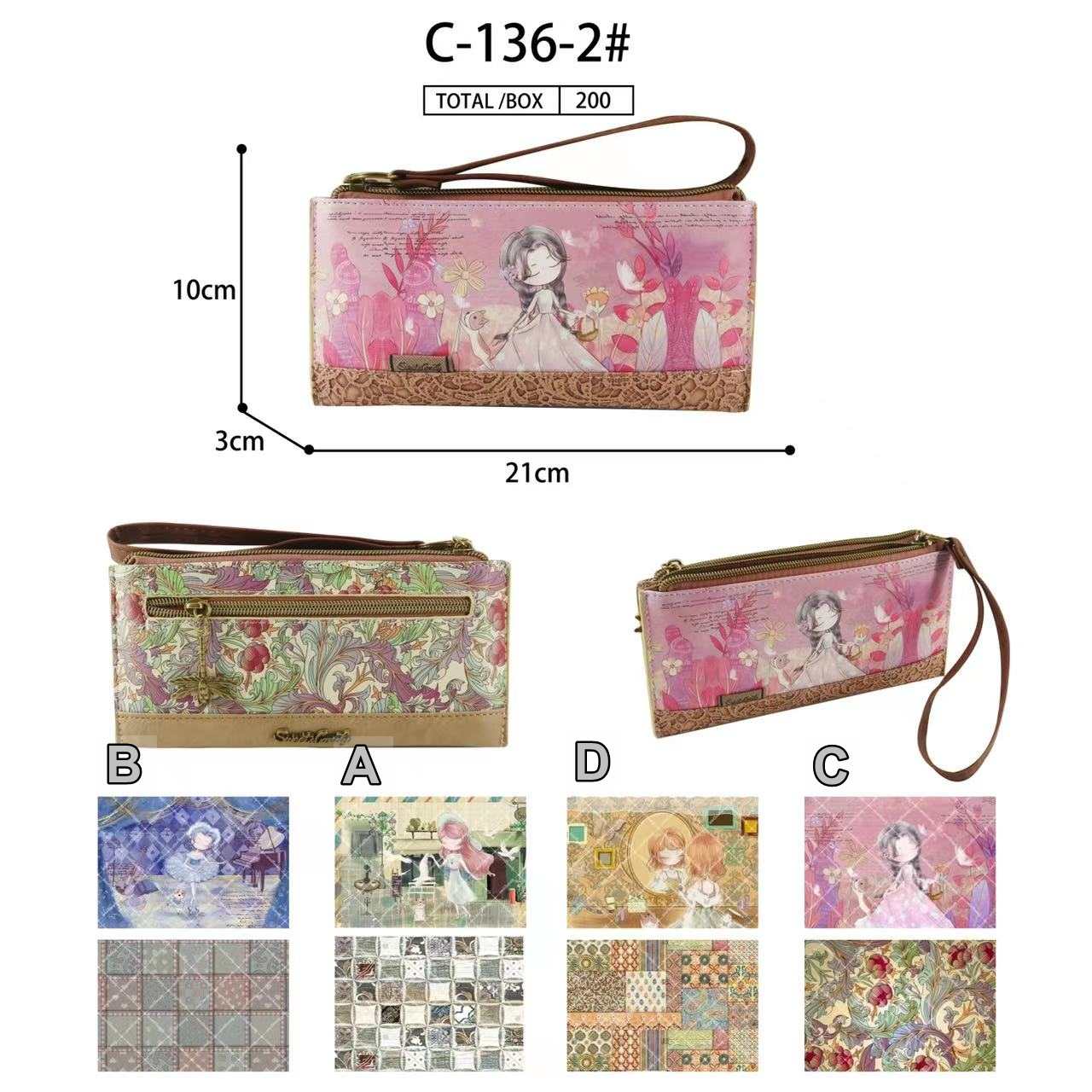 - Cartera con estampado diseño muñecas, con cierre por cremallera. Tiene varios compartimentos para tarjetas y espacio para foto.