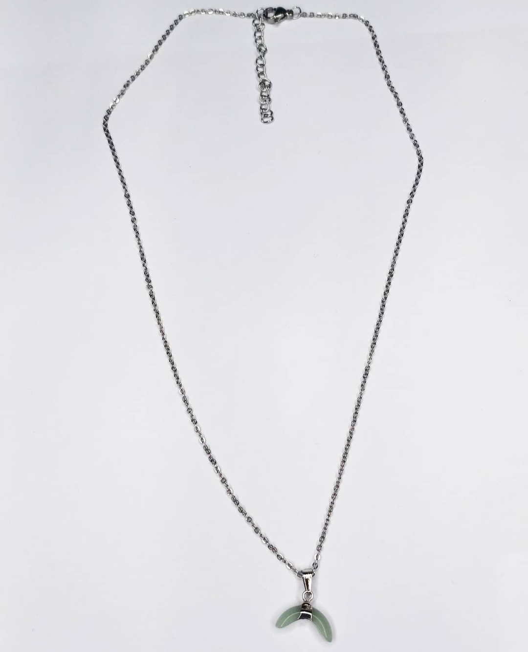 Colgante de color plata con detalle de piedra verdosa