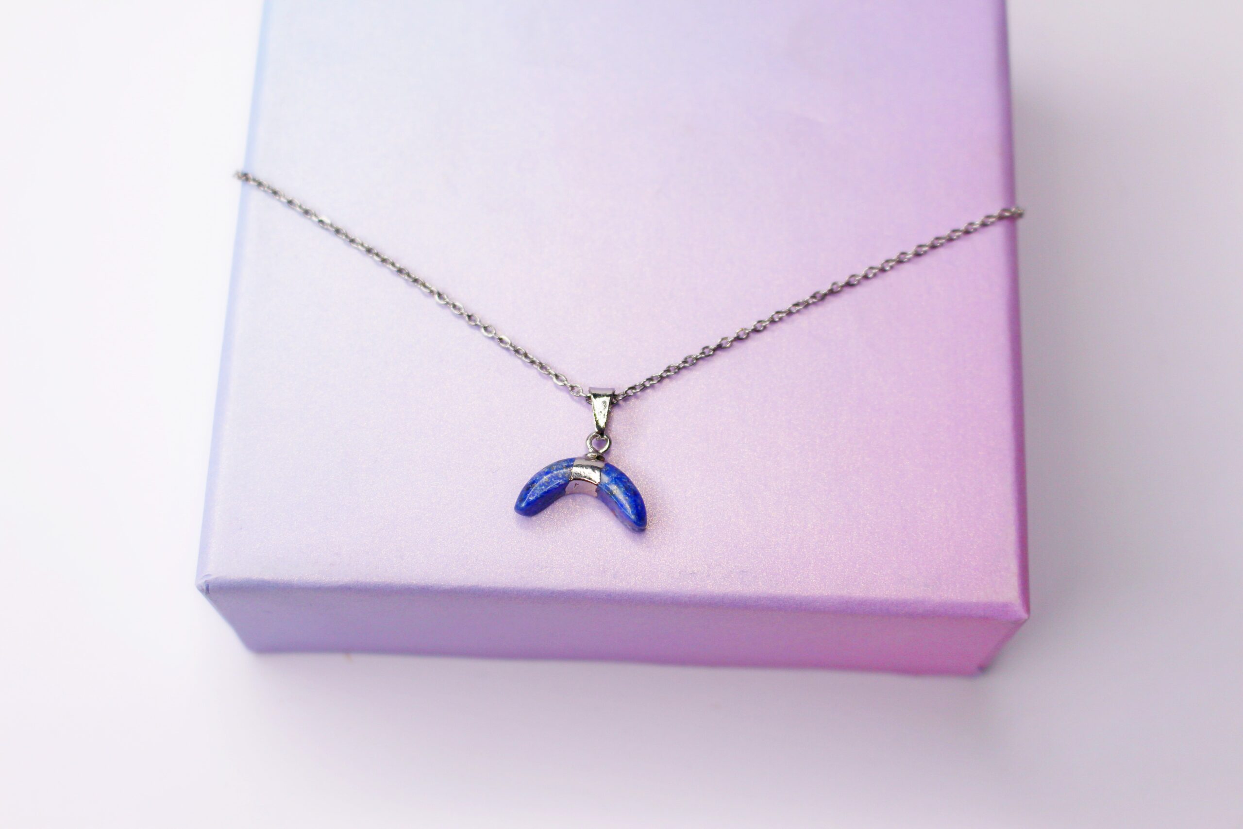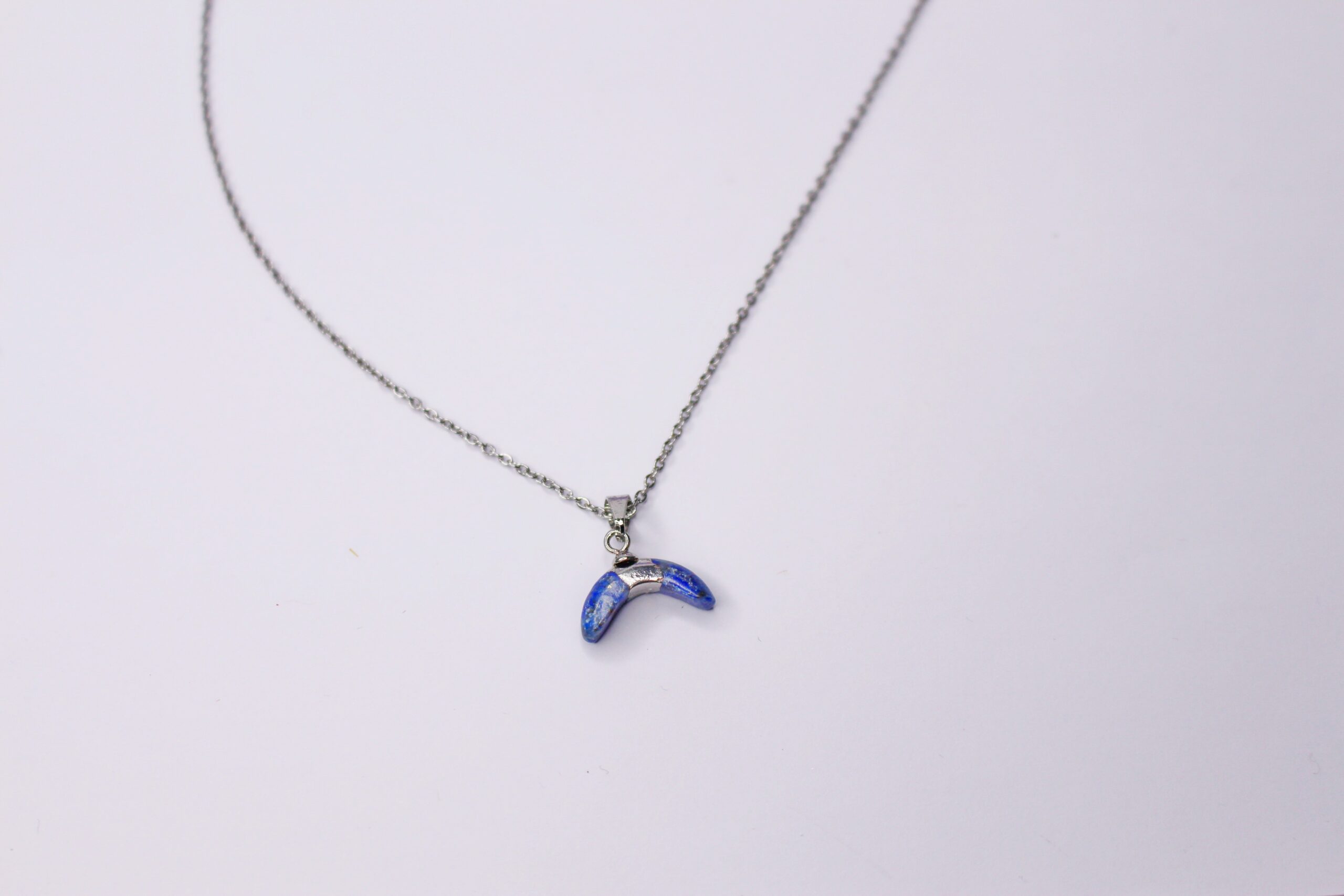 Colgante color plata con detalle media luna de piedra azul