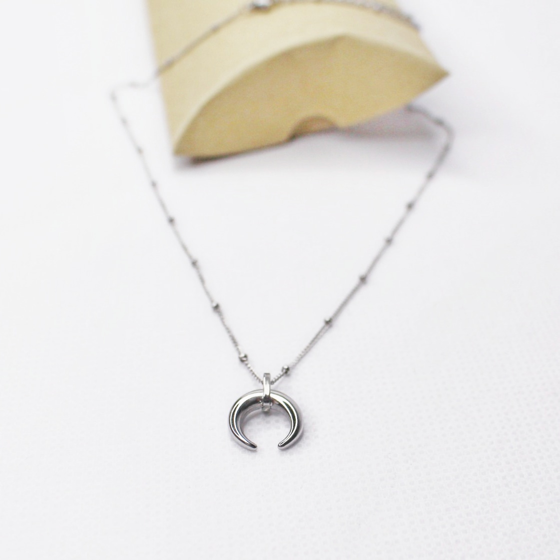 Colgante media luna plateada con cadena detalle bolitas