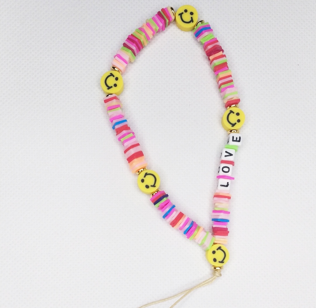 Colgante pulsera para móvil cara sonriente. La moda de los colgantes para el móvil ha llegado pisando fuerte en lilacc. Colgante multicolor.