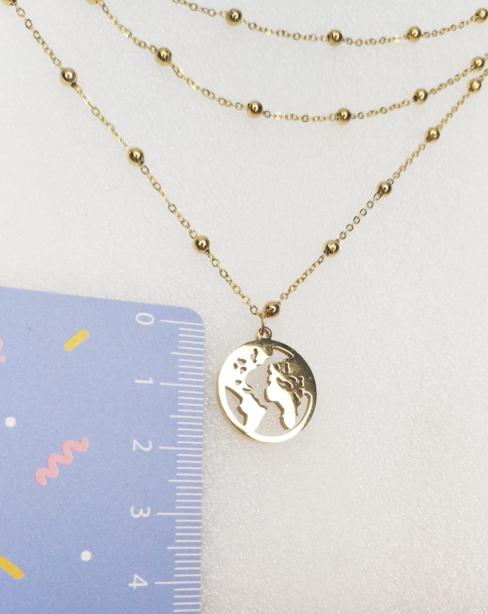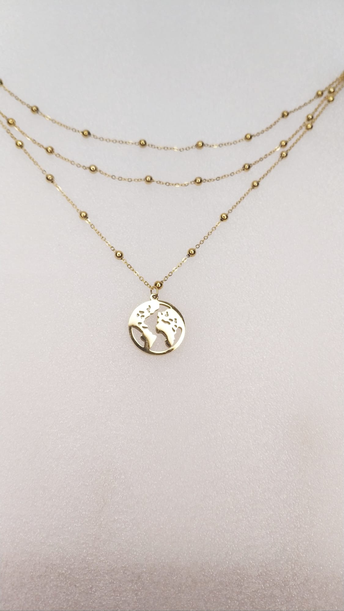 Colgante triple con detalle mapamundi color dorado