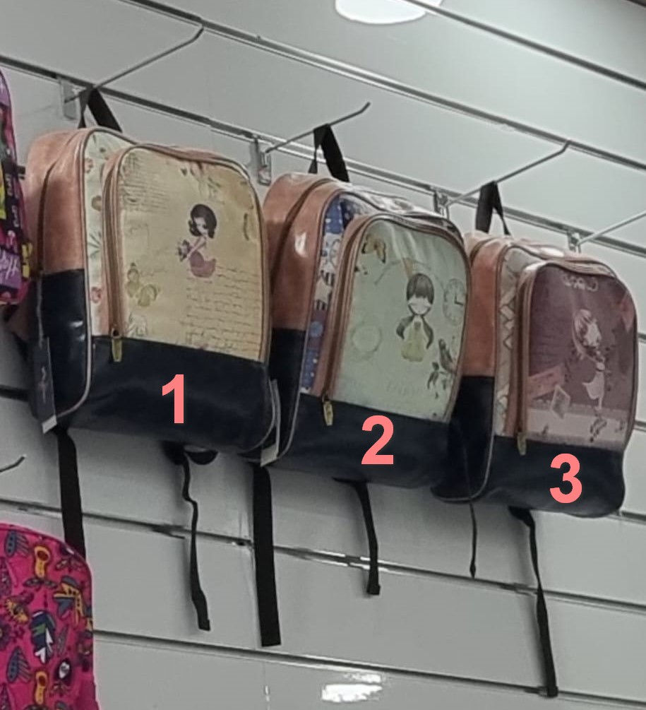 • Mochilas estampadas con laterales marrones, con bastante capacidad de almacenaje y varios compartimentos en diferentes tamaños.