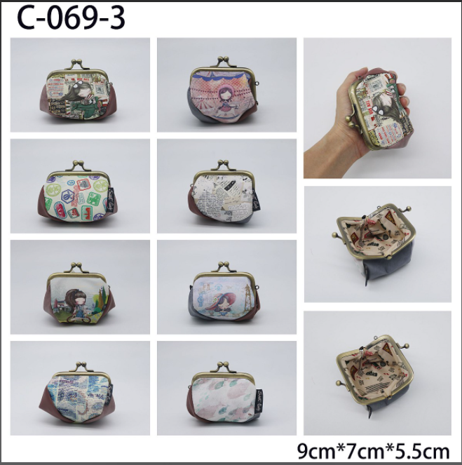 - Monedero rectangular con estampado diseño variados y cierre metálico estilo vintage.