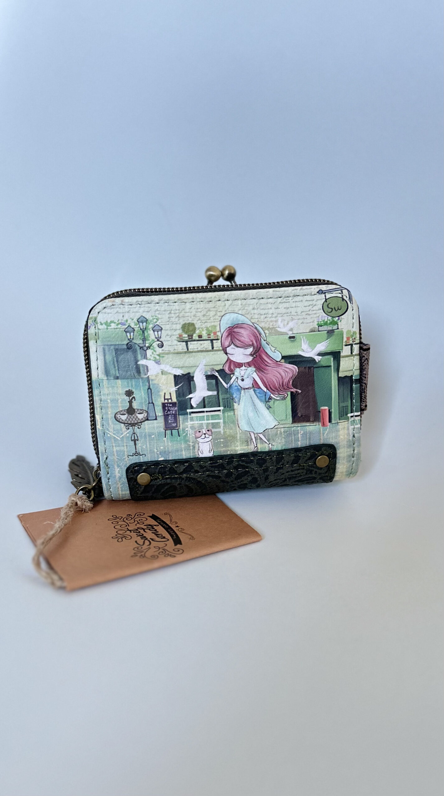 Monedero Sweet & Candy estilo vintage con tarjetero C-073 verde