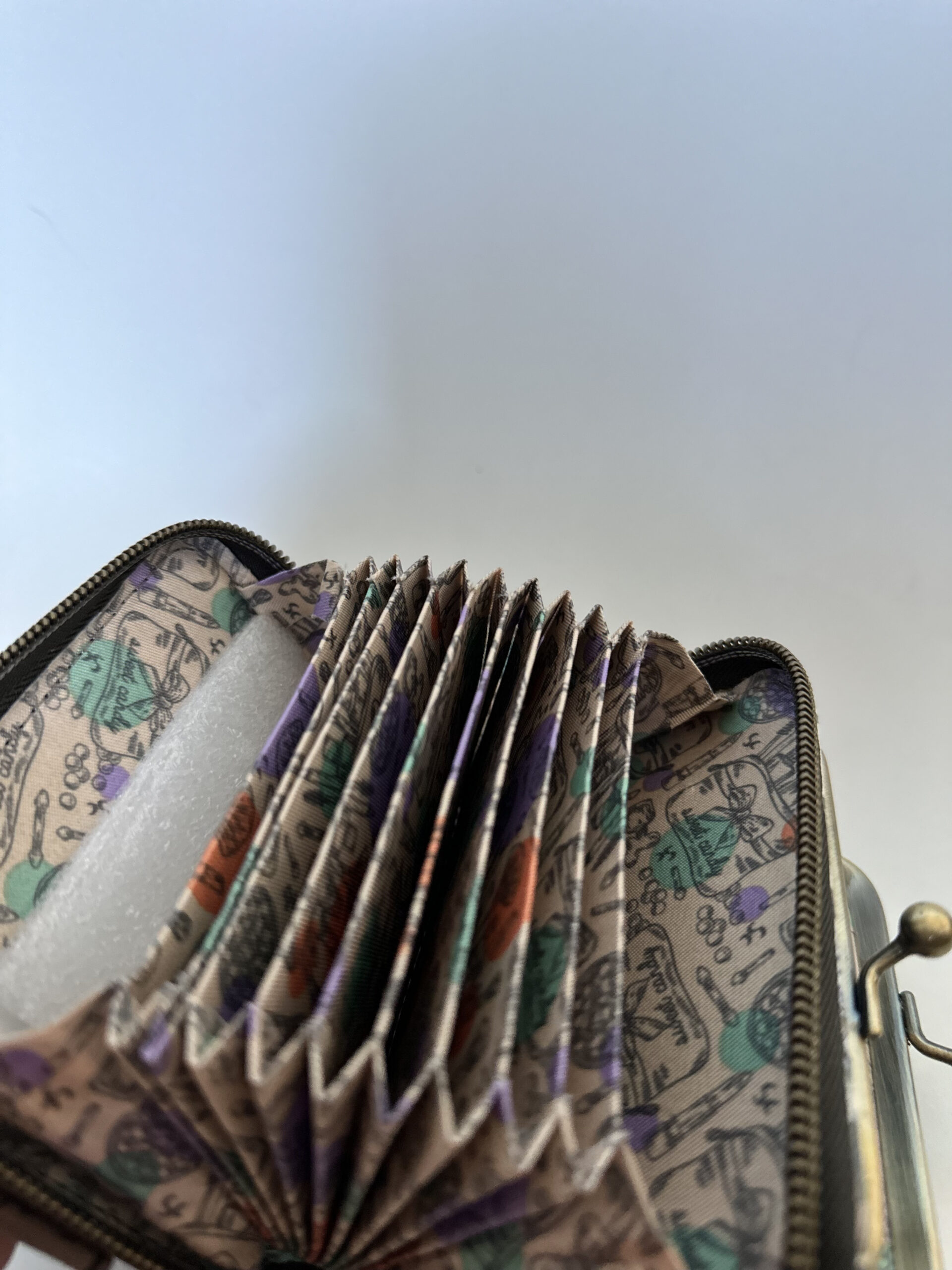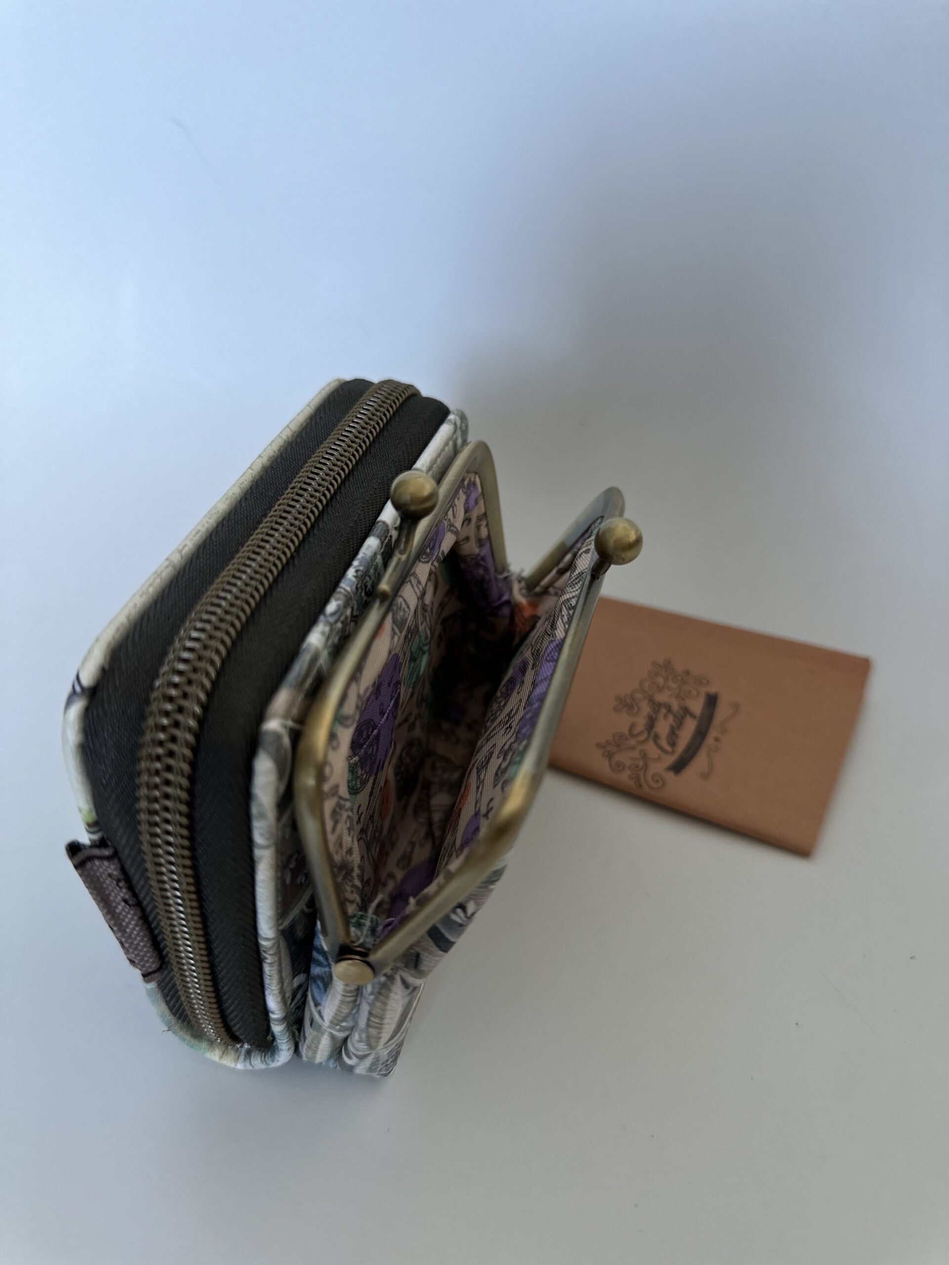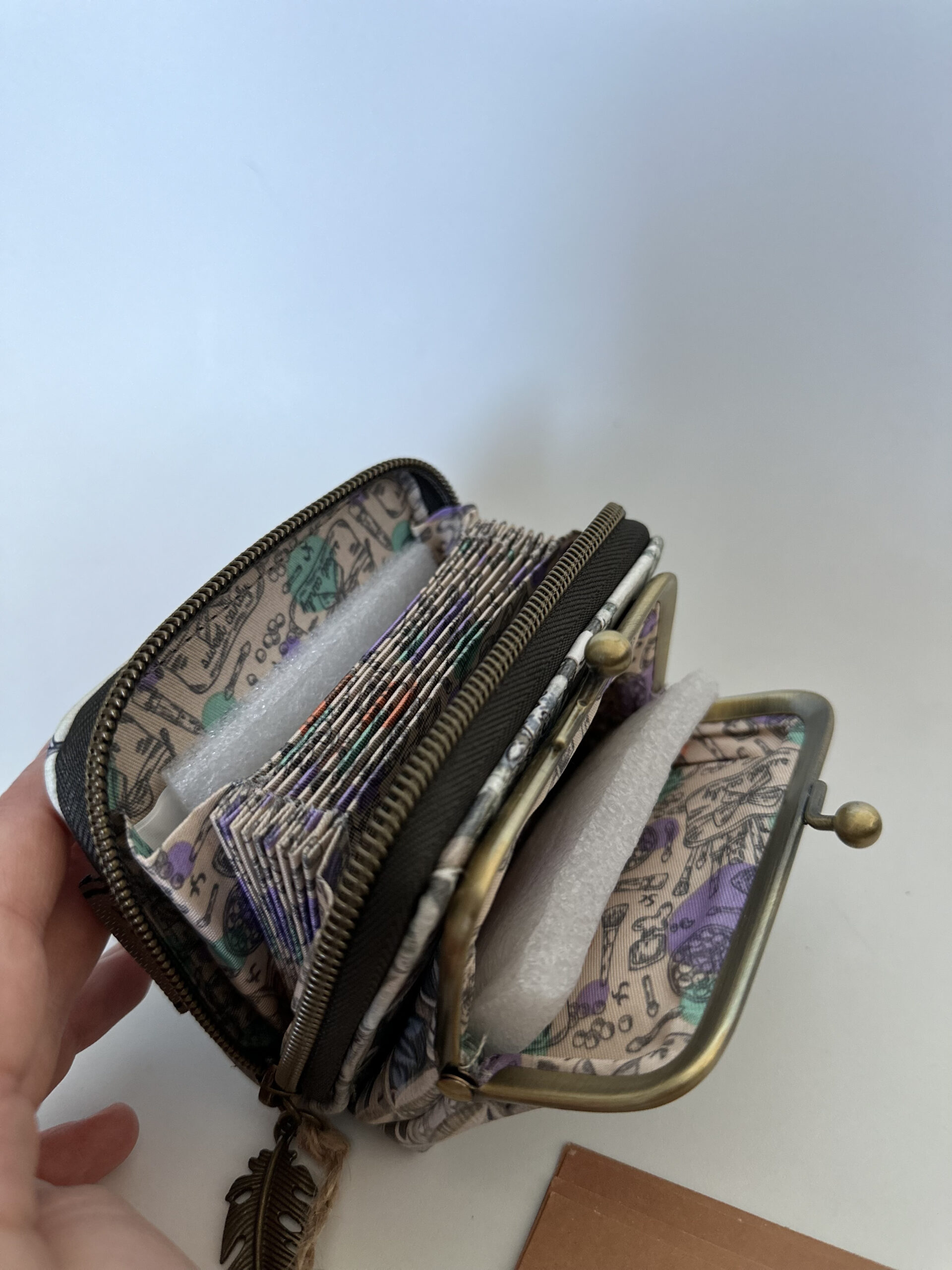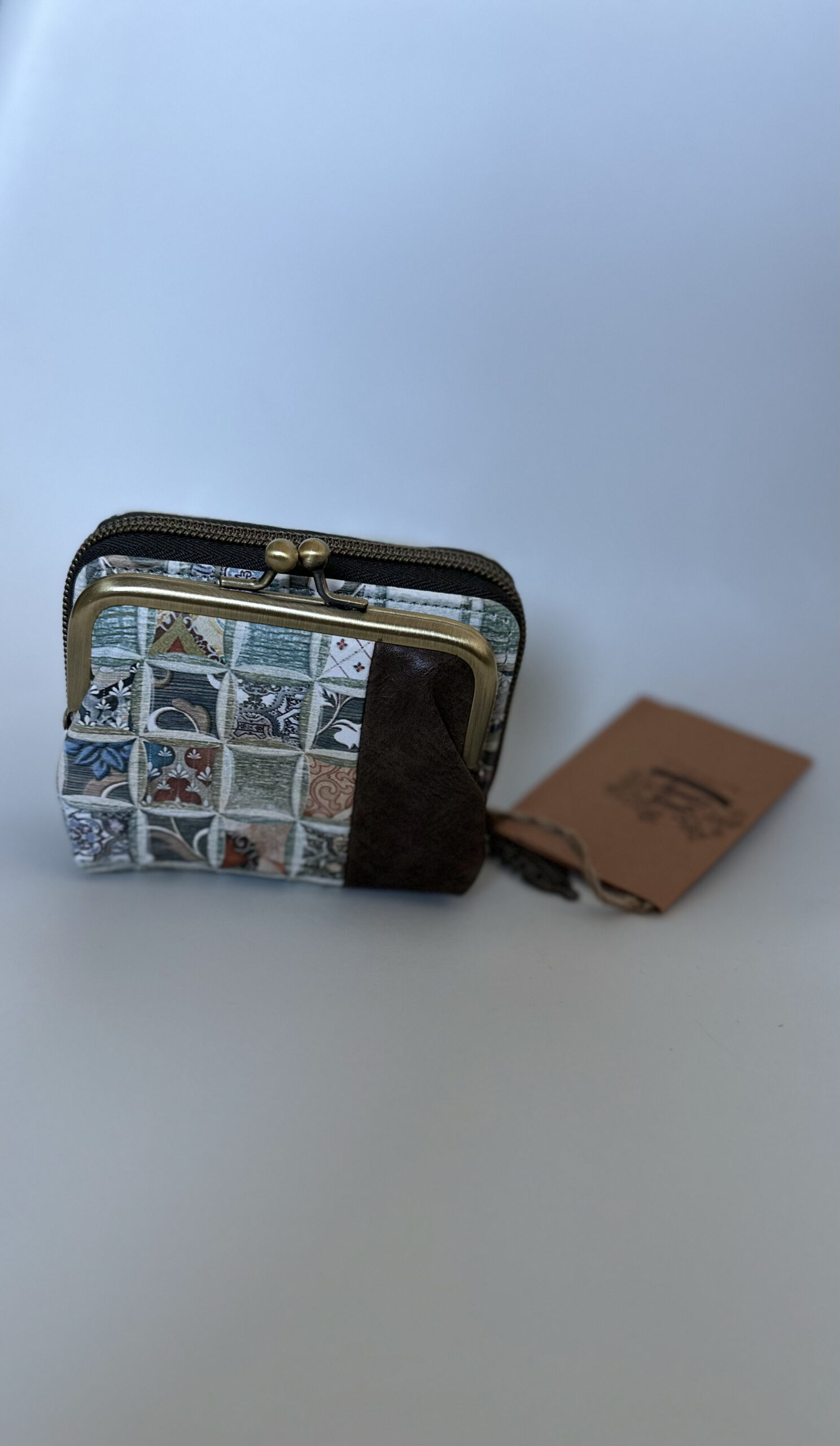 - Monedero rectangular con estampado diseño variados y cierre metálico estilo vintage.