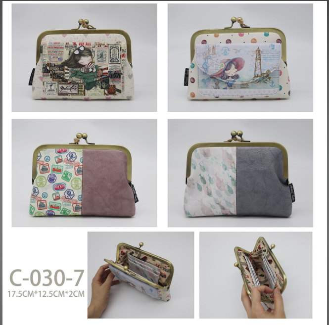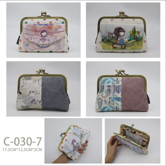 - Monedero rectangular con estampado diseño variados y cierre metálico estilo vintage.