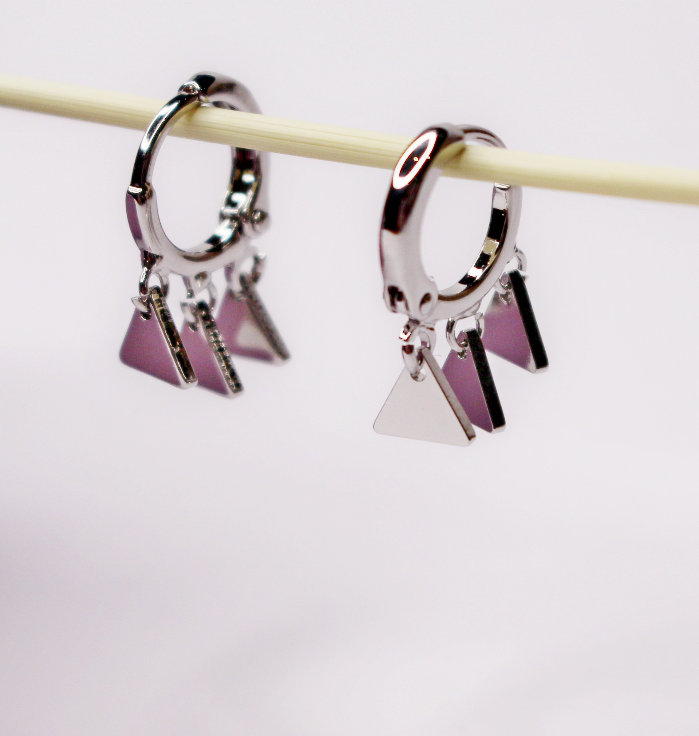 Pendientes aro con triángulos plateados