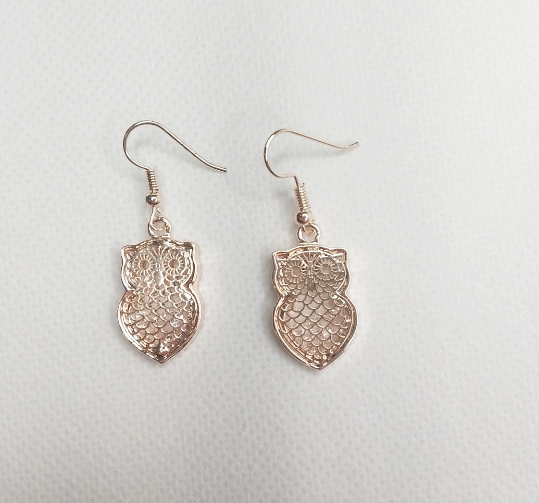 Pendientes búho color rosa gold