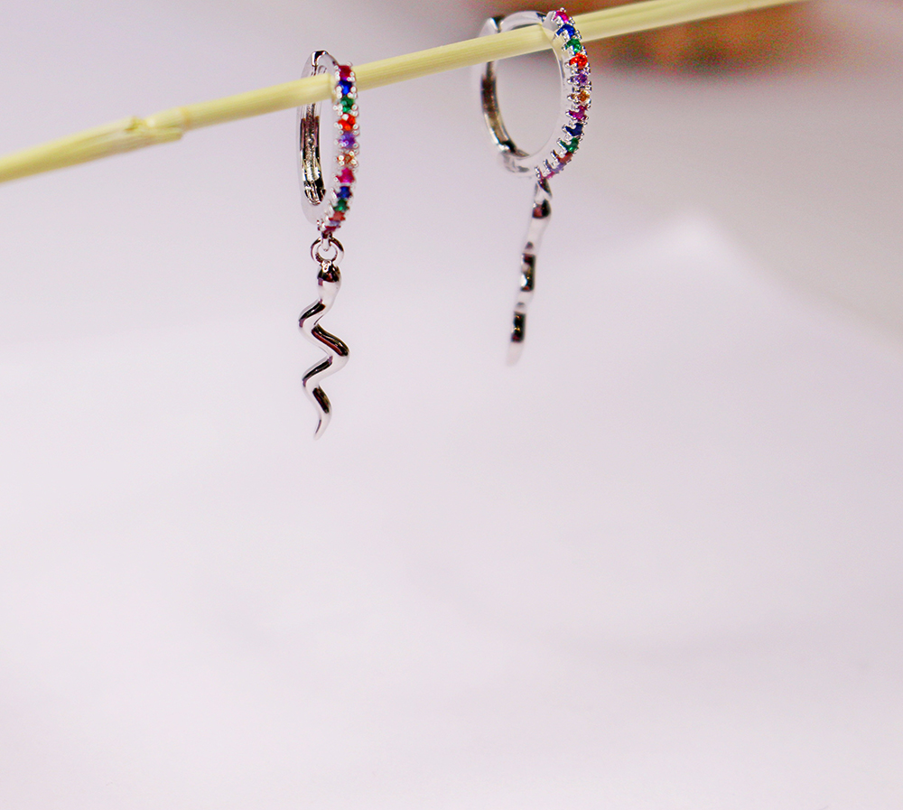 Pendientes color plata aro con circonitas y detalle de serpiente