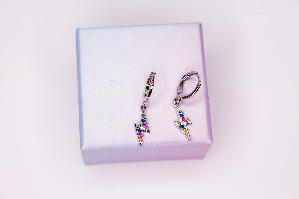 Pendientes color plateado aro rayo detalle circonitas