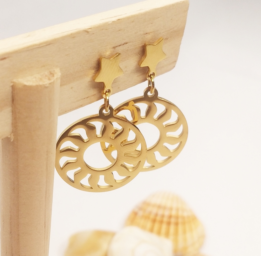 Pendientes estrella y sol dorados de acero inoxidable