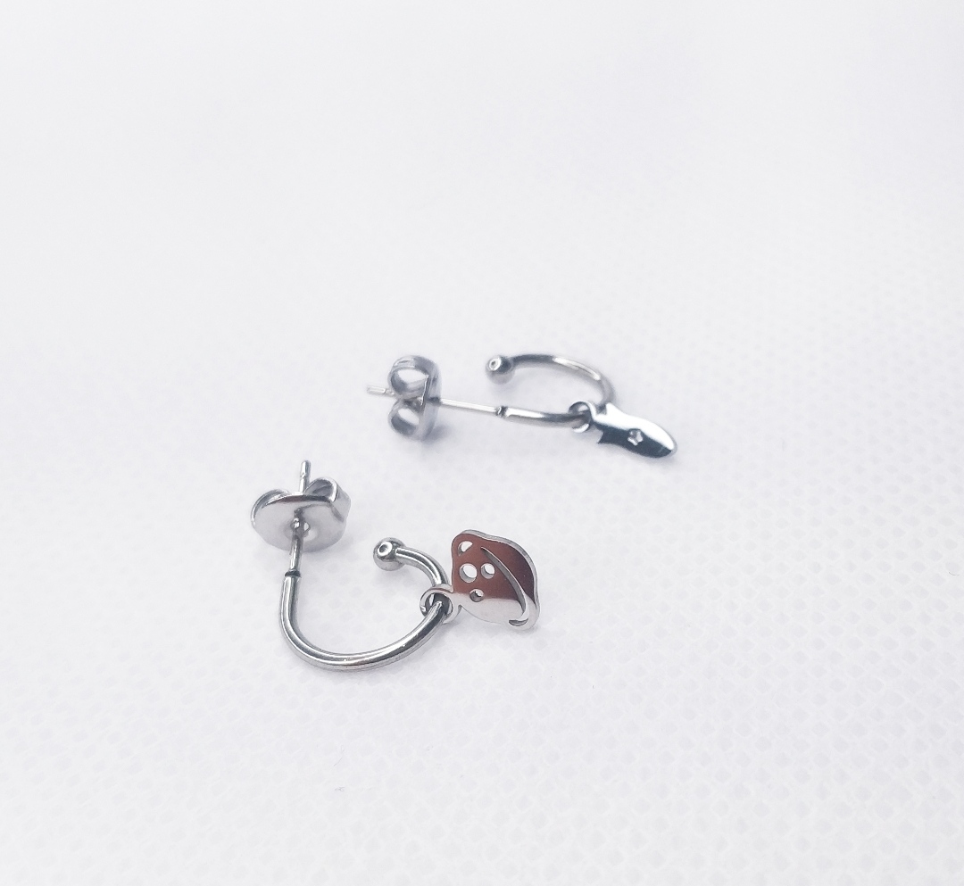 Pendientes mini aro abierto planeta y cohete en plateado
