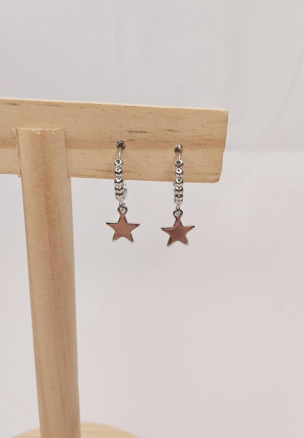 ? Pendientes mini aro con estrella y bolitas de color plateado⭐
