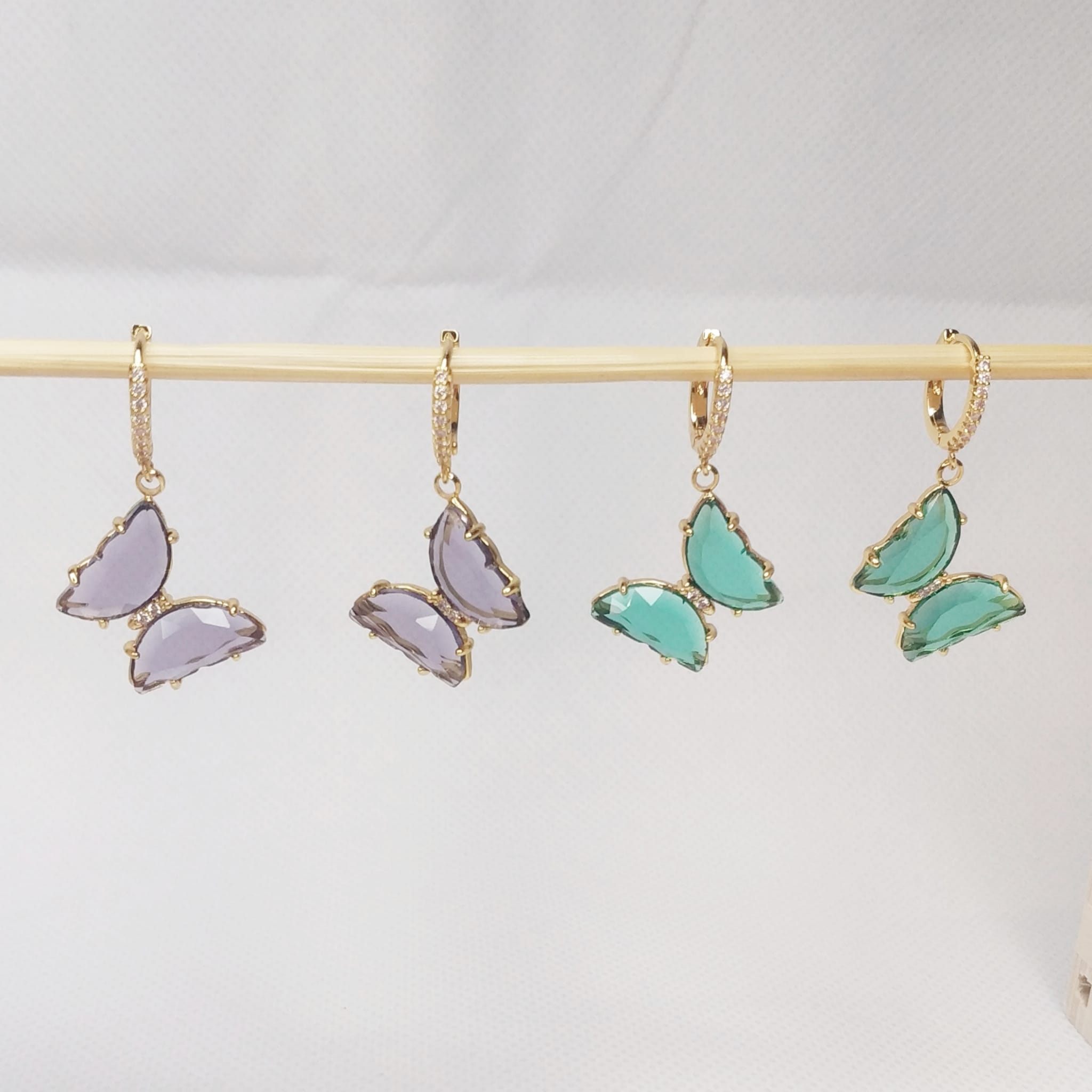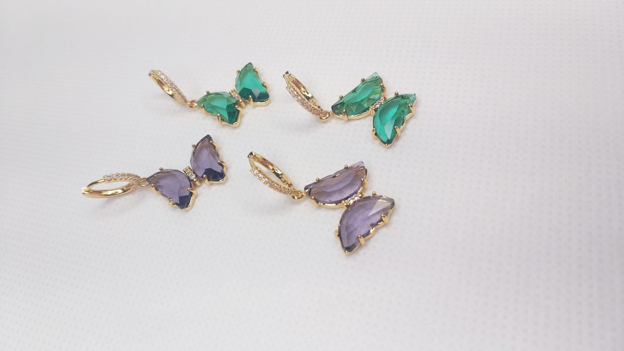 #pendientes #miniaro #verde #mariposa #morado #orolaminado #moda #tendencia