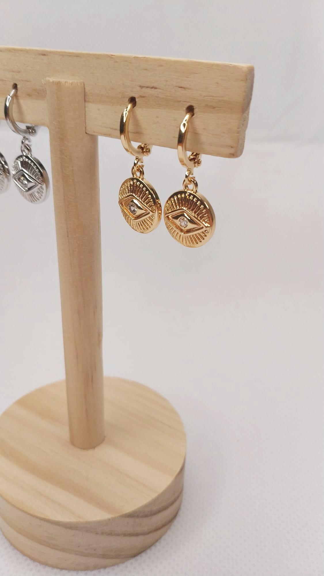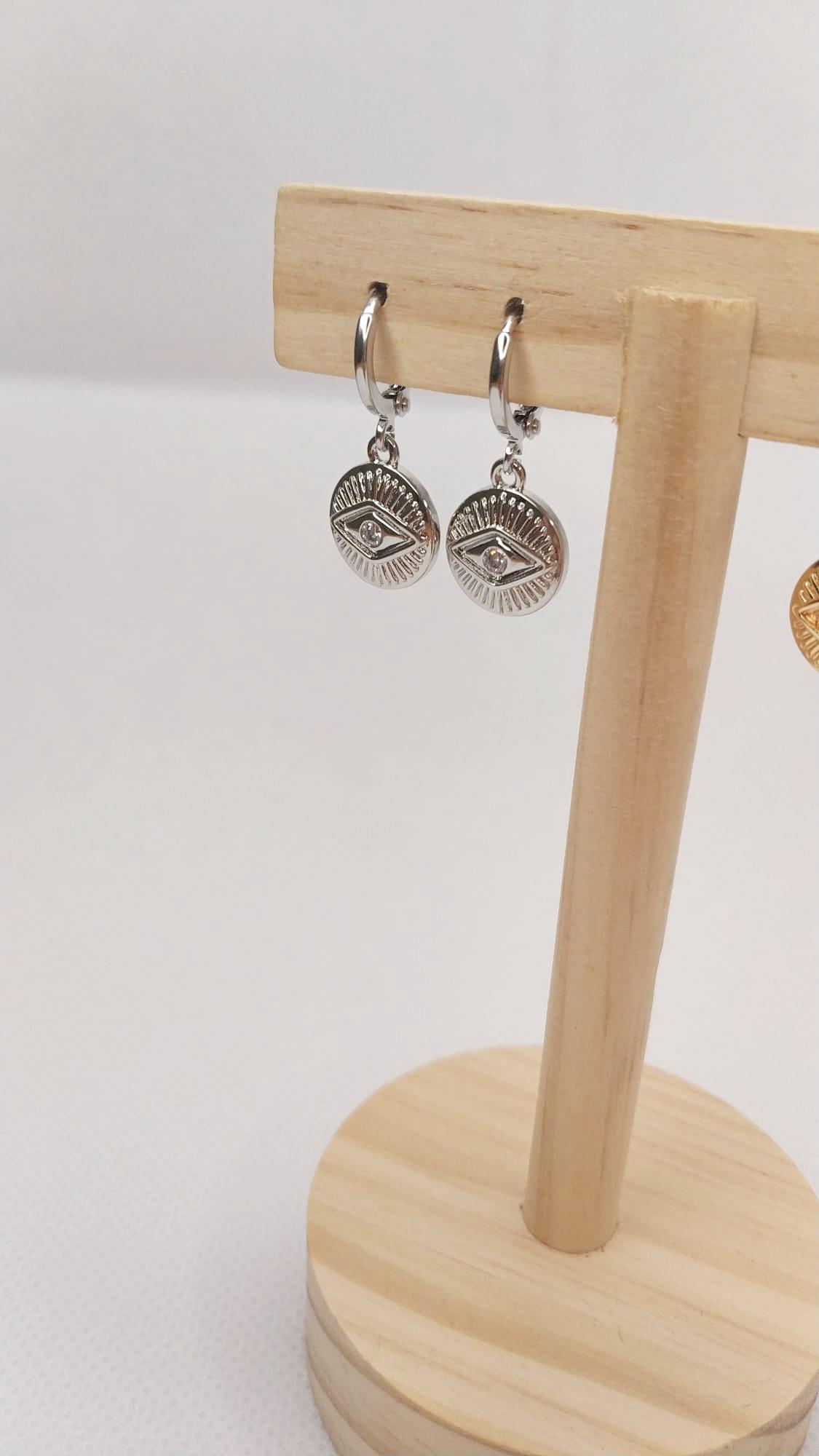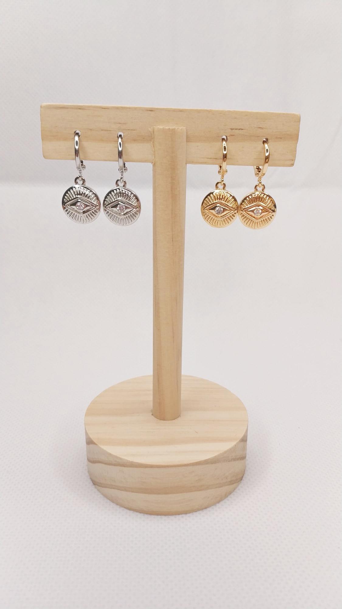 Pendientes mini aro detalle ojo en dorado y en plateado