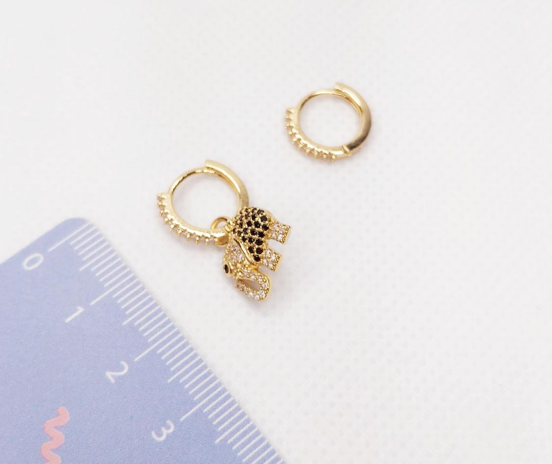Pendientes mini aro detalle elefante con circonitas dorados
