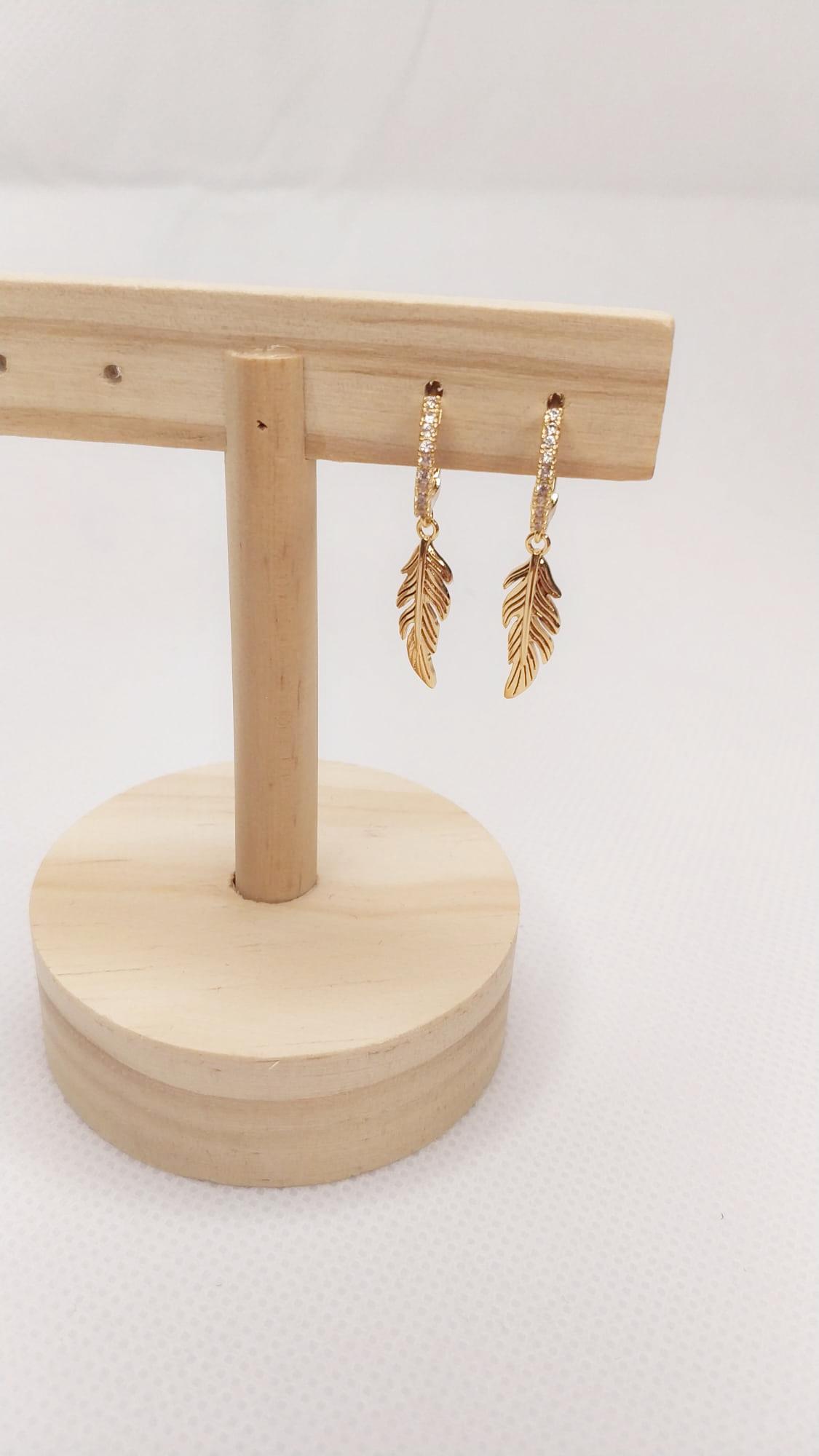 Pendientes mini aro plumas doradas