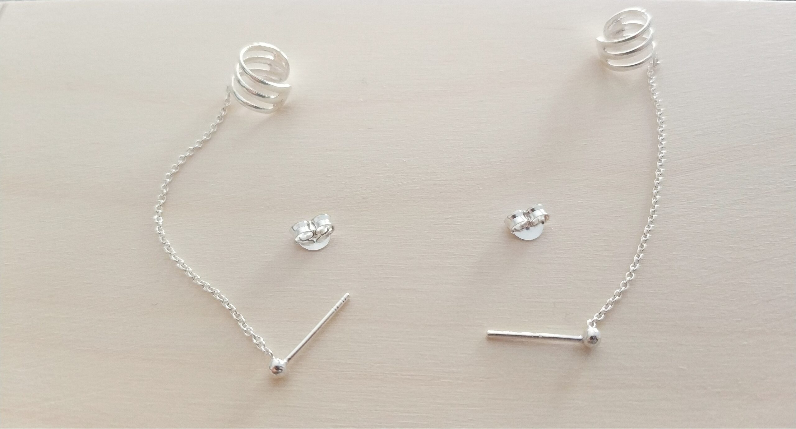 Pendientes trepadores triples Plata de Ley 925