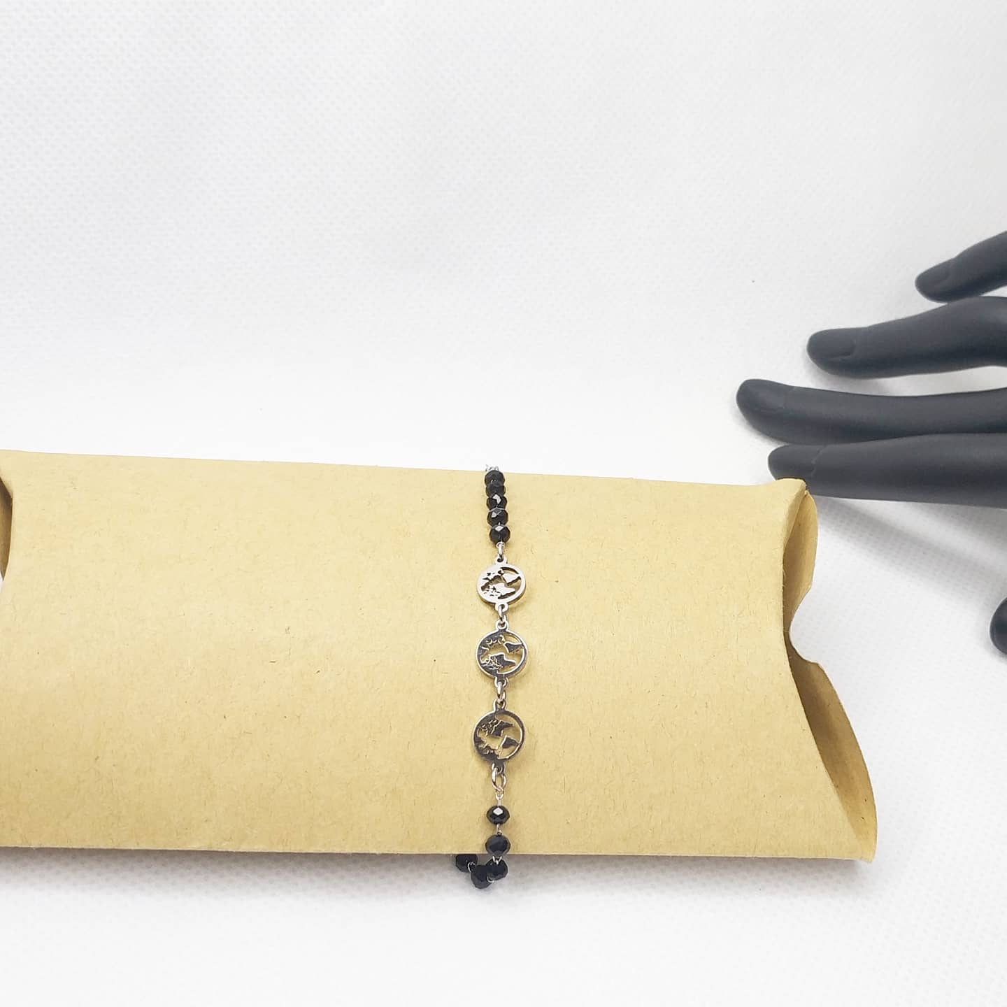 Pulsera con mapas del mundo, color plata y negro